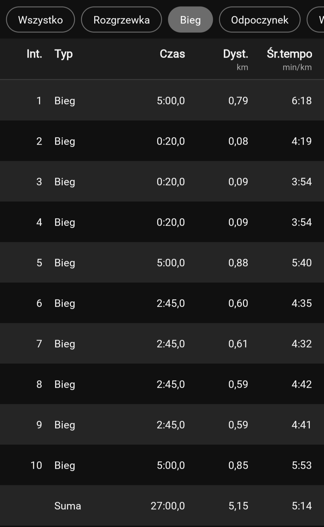 10km - dzień później płuco przepaliłem w średnim 4:25. Było o wiele lepiej, ale to