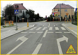 Na drodze z trzema pasami w jednym kierunku jest sytuacja, że lewy i środkowy jest do jazdy na wprost, prawy tylko do prawoskrętu. Taki znak stoi powiedzmy 100 metrów od skrzyżowania. Pasy przerywane na jezdni kończą się 30 metrów przed skrzyżowaniem. Chcąc jechać na wprost, według przepisów, powinno się jechać skrajnym prawym do ostatniego momentu w którym można zmienić pas na środkowy i wtedy czekać aż ktoś na środkowym mnie wypuści czy
