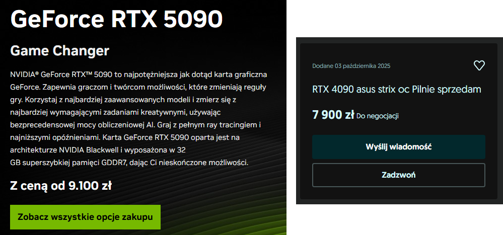 4090 za prawie 8k, a inne za ponad 9k używane.