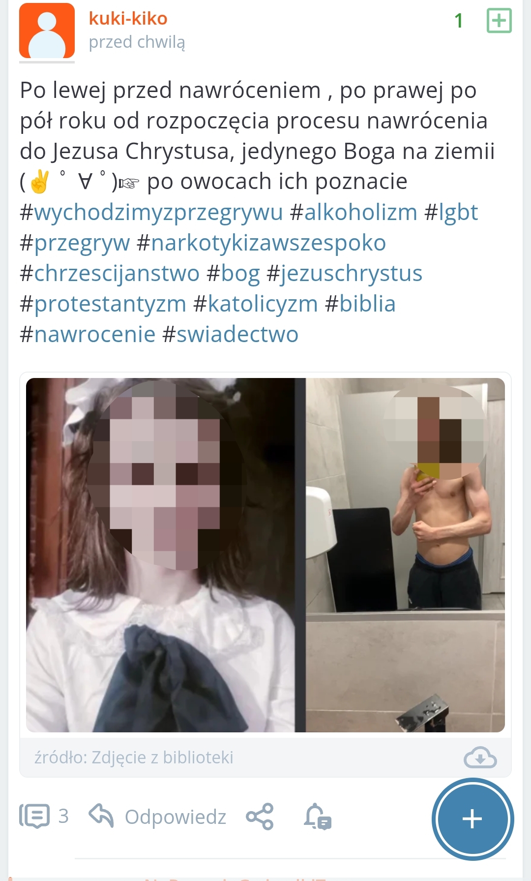 Typek @kuki-kiko wstawia zdjęcia osoby chorej psychicznie. Znam tego chłopaka, cierpi na schizofrenie. Był ofiarą przestępstwa seksualnego w dzieciństwie. A typek go wstawia publicznie na świętym tagu, oraz na wielu innych tagach. Wchodzę na profil gagatka, a on płacze, użala się nad swoim życiem. Wiecie co z kim zrobić, na kogo uważać... #przegryw #afera