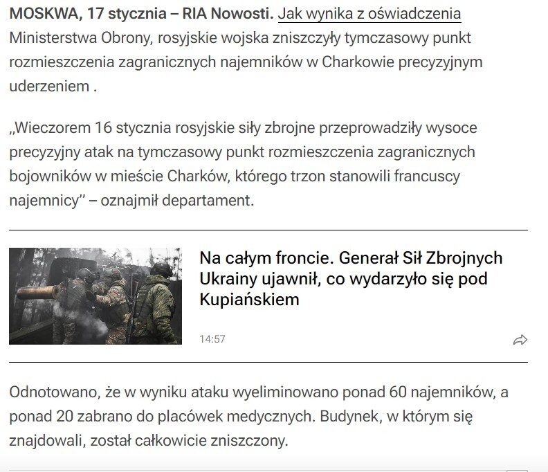 Widzę, że Rosjanie ostro lecą w narrację o zagranicznych najemnikach. Co prawda w grudniu lansowali wersję, że Ukrainie już się skończyły pieniądze na ich opłacanie i najemnicy uciekają, ale teraz to co moment najpierw polskich łapią na froncie albo francuskich likwidują. Nie ma się co dziwić, że jak się walczy "z całym NATO" to błyskawiczna ofensywa może się lekko opóźniać. #rosja #wojna #ukraina