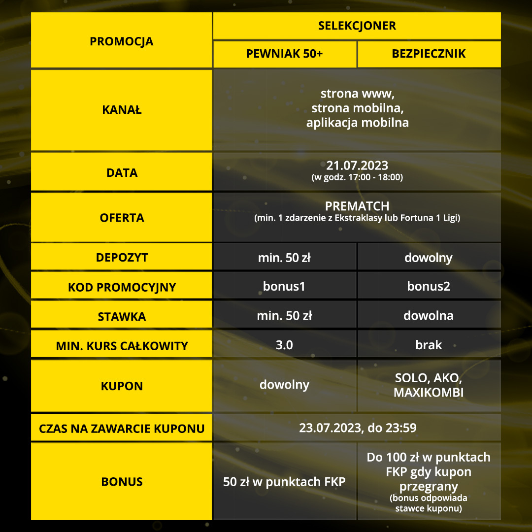 Fortuna nie zwalnia tempa i po raz kolejny serwuje dwie ciekawe propozycje bonusów na 21 LIPCA.