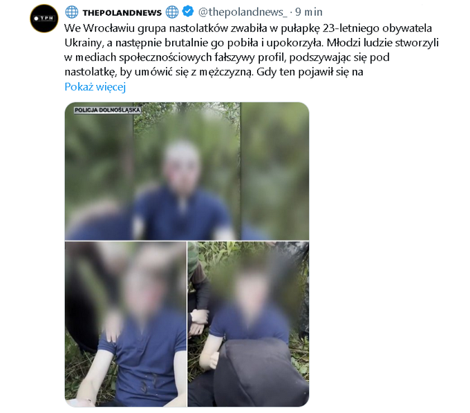 zWrocławscy policjanci z komisariatu na Krzykach prowadzą śledztwo w sprawie szokującego incydentu, do którego doszło we wrześniu w stolicy Dolnego Śląska. Grupa nastolatków, podszywając się w internecie pod nieletnią dziewczynę, zwabiła na spotkanie 23-letniego obywatela Ukrainy.