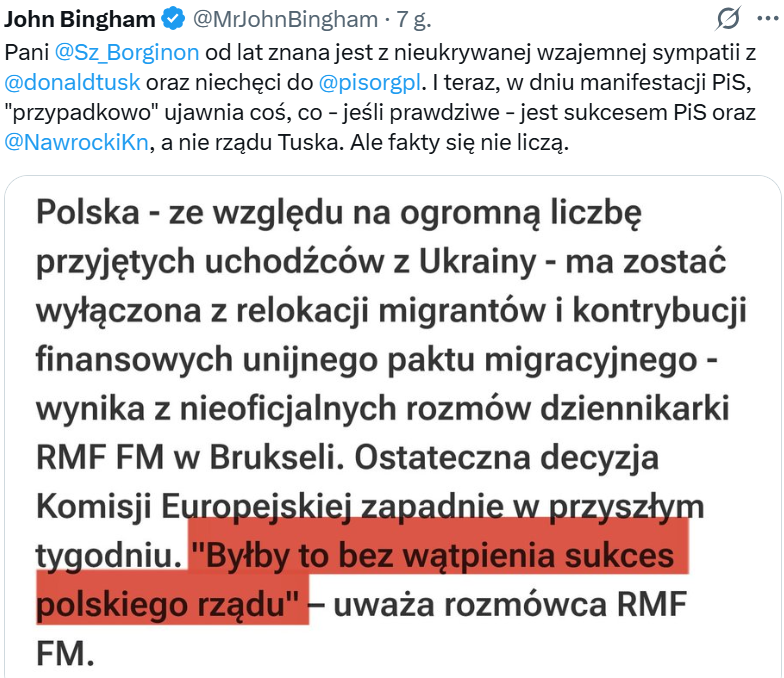 Polska ma zostać wyłączona z paktu migracyjnego podaje RMF FM. Komisja Europejska zdecyduje się na zwolnienie z relokacji migrantów i finansowych obciążeń z uwagi na uchodźców, których Polska przyjęła po wybuchu wojny w Ukrainie.