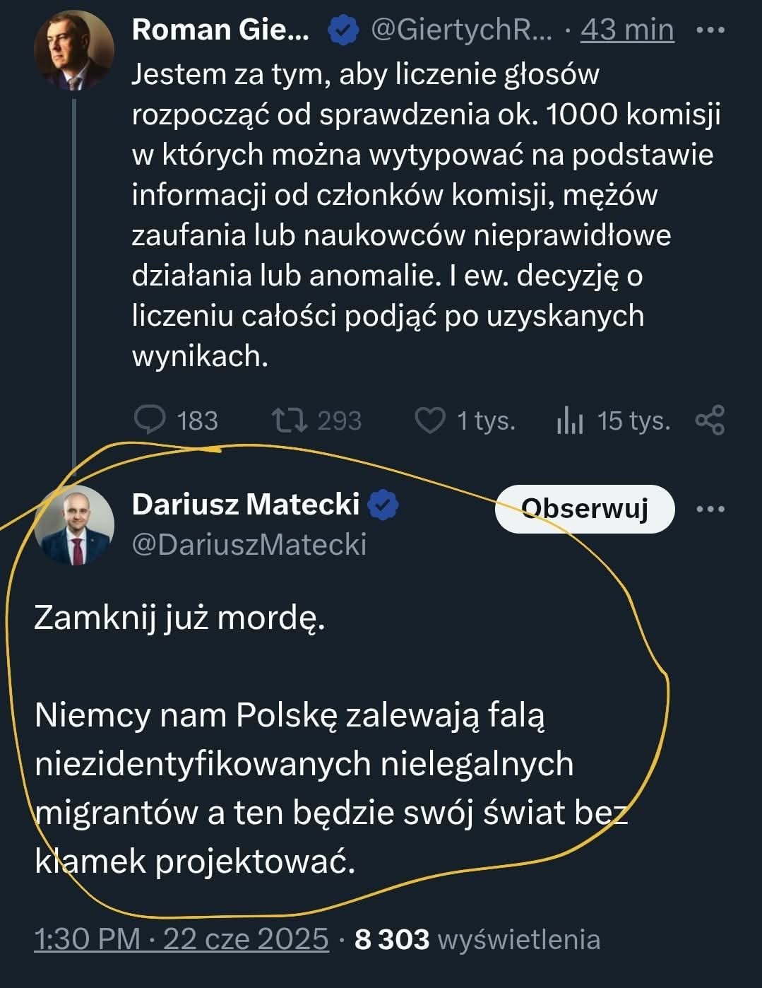 @smutny_kojot Cię ponosi. Kłamiesz że prób fałszowania nie było i zamienione głosy wcale nic nie znaczą. Co to teraz nie wolno chłopu nosić koralików? Z jakiej to przyczyny? Zegarek może też ma zdjąć? Jeszcze wyjdzie kto za tym stał i kto jest na tyle bezczelny by próbować takich manewrów. Choć to drugie to już wiadomo.