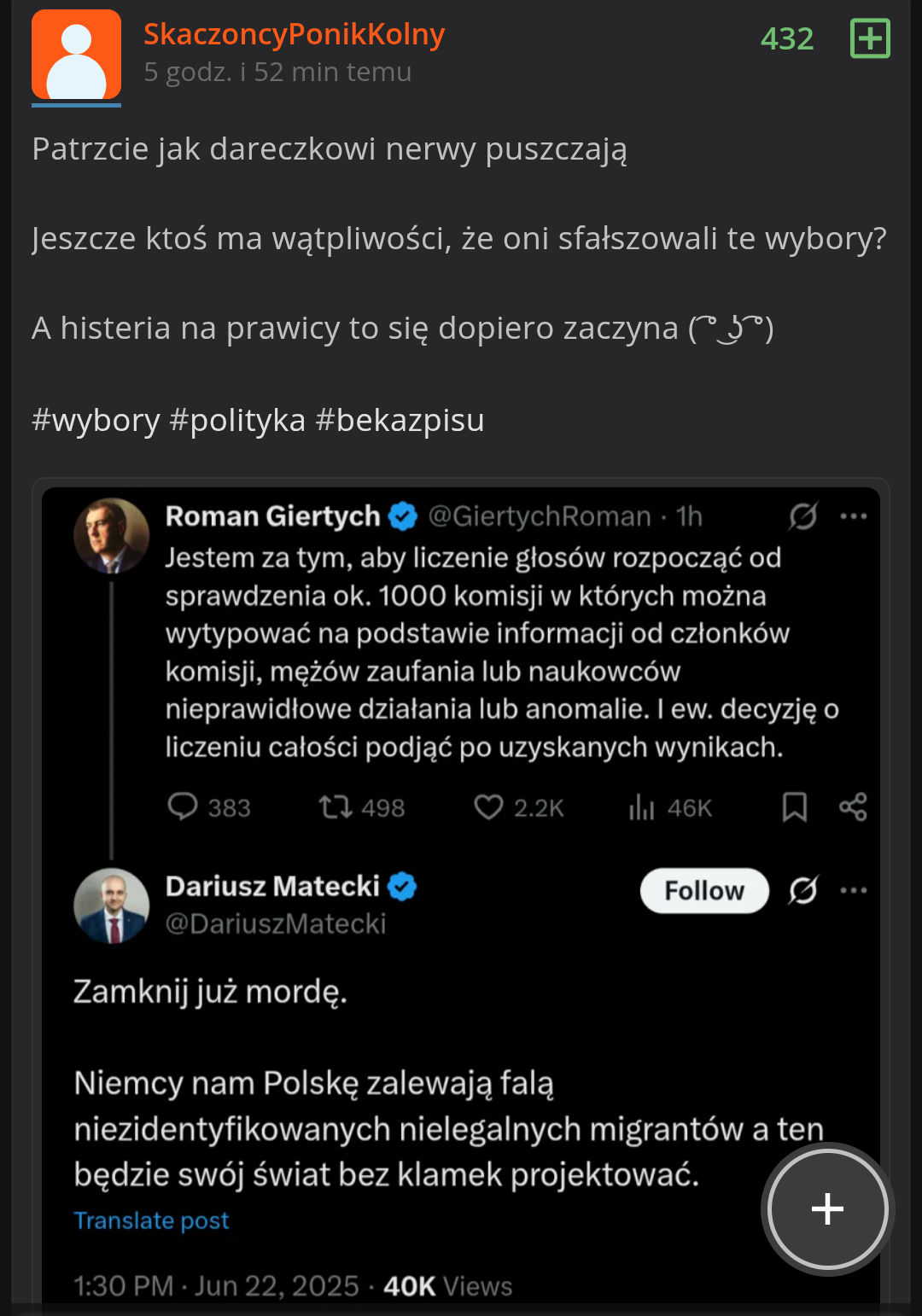Ale za to nie mają najmniejszego problemu, z tym żeby pisać, że opozycja sfałszowała wybory i wyplusowywac to w gorące, co jest jakby nie patrzeć