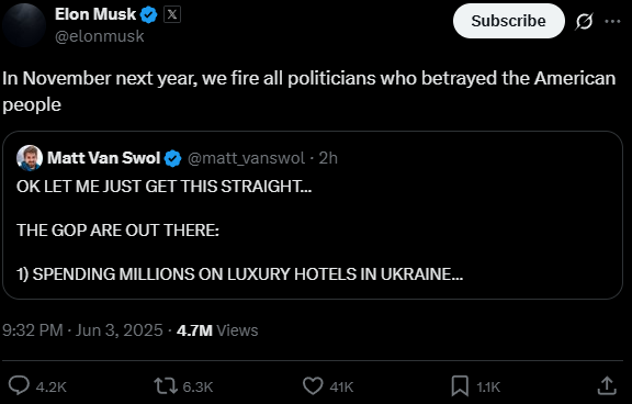 @Need: chodzi o L.Grahama który jest Ukrofilem a to Elonowi nie podoba się. Tak czy sioak Graham przegiał bo wystawił rachun ek za chyba 2 dni hotelowe za 400k $