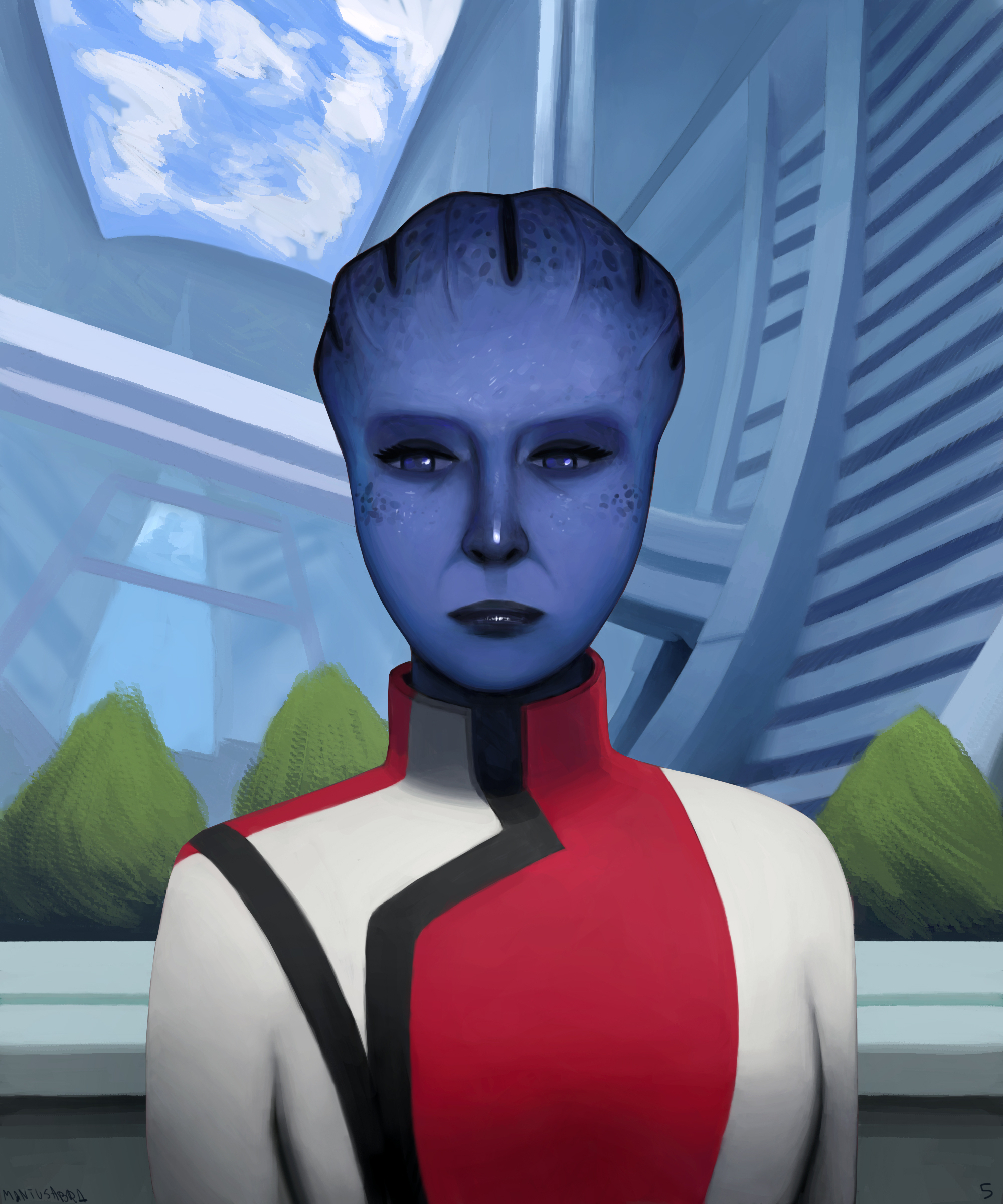 Przez wątek ufo sobie przypomniałem o grze Mass Effect i jakiegoś fanarta zrobiłem. Randomowa postać z rasy asari. Miałem jeszcze ręce dodać, ale już mnie zmęczyła i znudziła ta praca, lepiej coś innego zrobić. #bazgrolymantusabra #rysujzwykopem