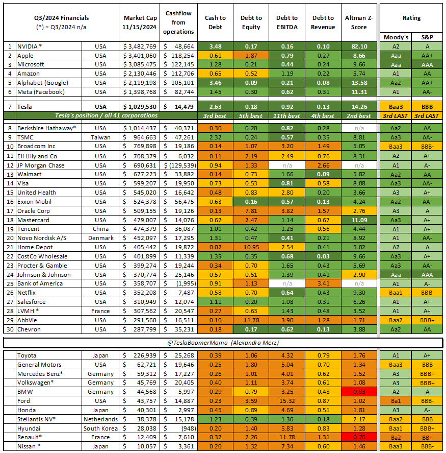 Ludzie nie zdają sobie sprawę, jak Tesla jest dyskryminowana przez ratingi. Powinna mieć bez problemu AA albo AAA, tymczasem Moody's i S&P jadą ostro po bandzie. W praktyce to powodu, że masę funduszy emerytalnych w USA nie może kupować akcji Tesli, bowiem mają w regulaminach, że instrumenty w które inwestują muszą być "odpowiedniej jakości".