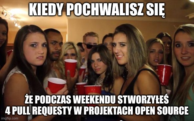 @Kordem: ostatnio wbijam na linkedina jednego gościa z którym miałem przyjemność pracować i w bio dumnie chwali się że "otworzył pull request do repo języka X i został zaakceptowany". Myślę sobie "wow nieźle, nie wiedziałem ze na tyle ogarnia". Zainteresowany postanowiłem sprawdzić co to za zmiana, a tam commit w którym zmienił literkę w nazwie jednego dependency używanego w projekcie. Dosłownie dependency -> Dependency w readme xDDDD