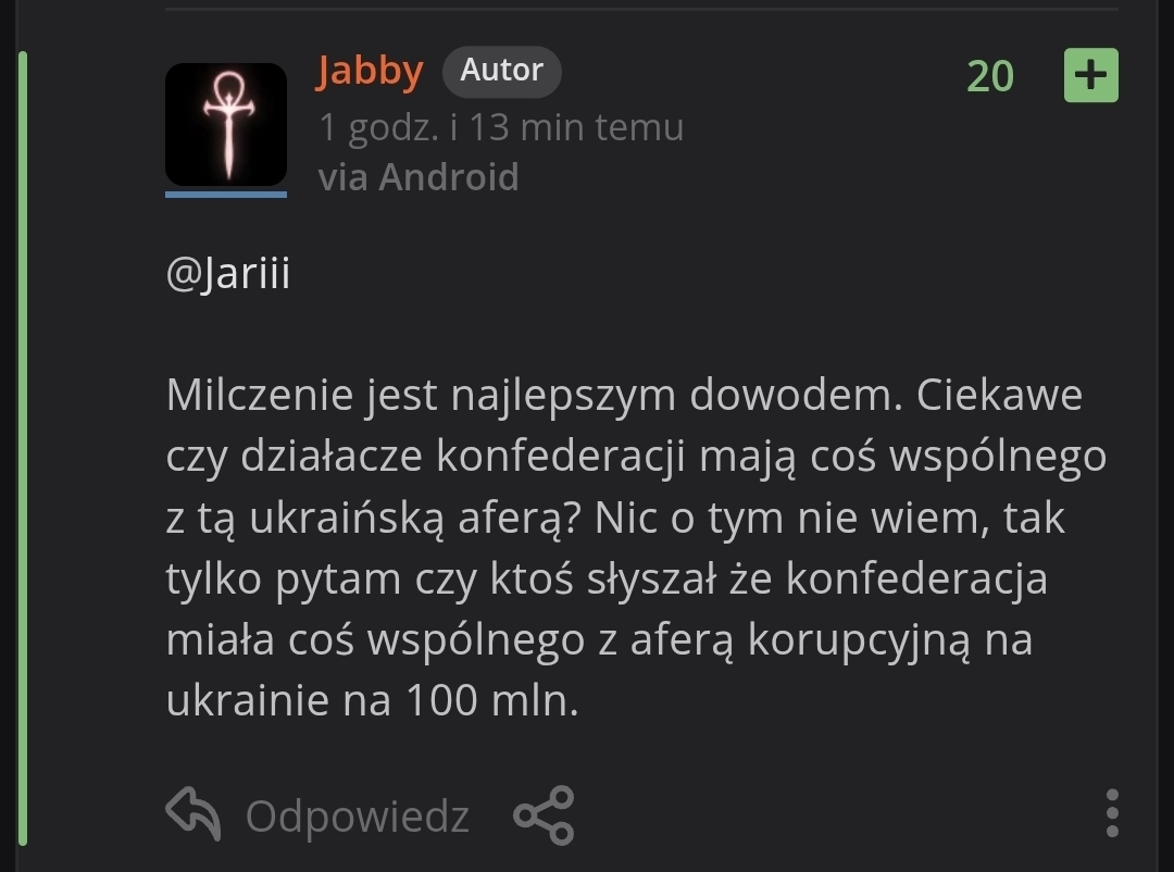 PobierzTymczasem konfederacja ma 16 posłów, 1 jak wiemy nawet ostatnio dopuścił się kradzieży. Nie drążąc dalej, daje to 6,25% - czysto statystycznie większe prawdopodobieństwo jest, że kolejne przestępstwo popełni ktoś z grupy 6,25% a nie 1%... Nic nie sugeruję ale matematyka też potwierdza obawy ludzi, że za sabotaż mogą odpowiadać ludzie z konfederacji...