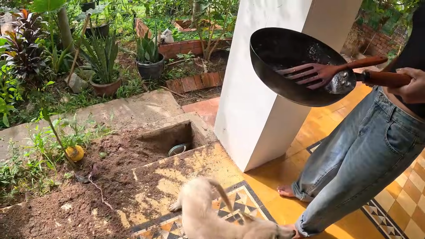 Klapek pokazuje rozkopane roślinki przez psa i klapka, którego próbował zakopać. Mówi że kończy nagrywać bo trzeba się brać do roboty i to sprzątnąć. Następne ujęcie: dalej jest rozkopane, przyprowadza Phannę xd. Jest chyba trochę bardziej słonecznie.