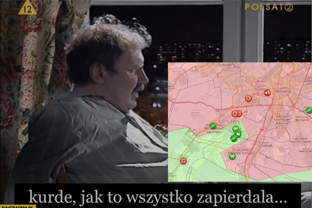 A jeszcze wczoraj oglądałem Puls Lewantu o tym jak zajęcie w ciągu kilku dni Homs zagrozi Damaszkowi, do którego weszli już dzisiaj (ale od południa xD) #syria #bliskiwchod
