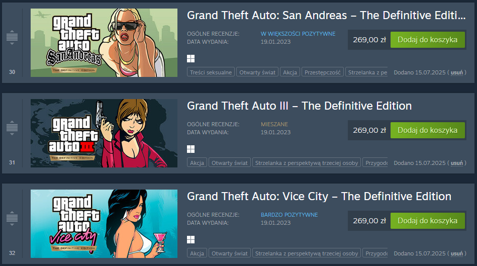 Słyszałem, że wyszły te odświeżone wersje starych GTA i psy na tym były wieszane, mało mnie to jednak interesowało. Teraz tak mnie starego boomera naszła ochota żeby przejść sobie jeszcze raz i czemu nie w odświeżonej wersji. Niemniej widzę, że kogoś tutaj ładnie p----------o w główkę. Obejdzie się. Jest sens to piracić? #steam #gry #gta