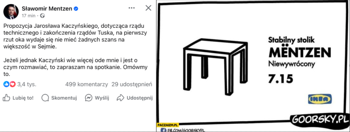 "Prezes PiS pytany, czy przyjmie zaproszenie od Sławomira Mentzena sugeruje, że jako prezesowi dużej partii nie wypada mu się spotkać z liderem mniejszej partii"