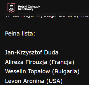 PZSzach podaje, że wystąpi w Polsce niejaki Levon Aronina.