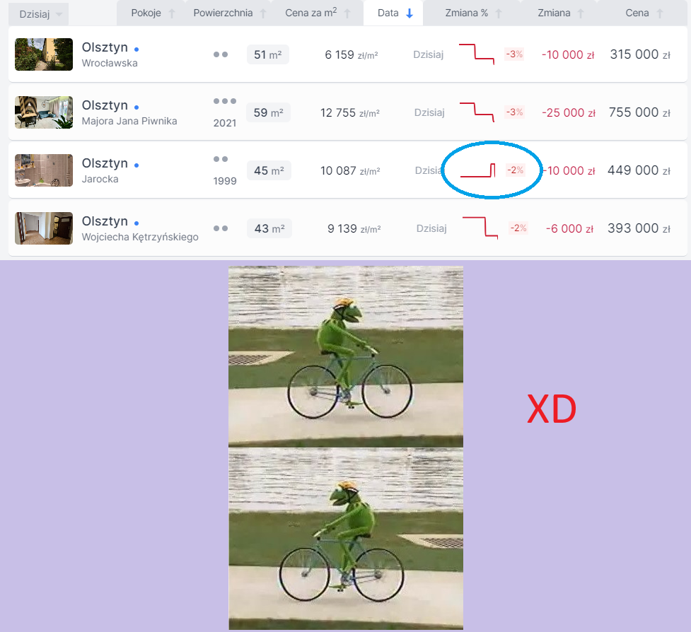 #nieruchomosci Mam koleżankę, pośredniczkę, co "co nie dopowie, to dowygląda" - i tak idzie przez życie wyglądem a nie tym, że się na czymś zna. Ale do rzeczy. Jeszcze rok temu, jak nieruchomość nie znalazła klienta, to na propozycję obniżenia ceny słyszała ryk w słuchawce xD Teraz klienci sami mówią, żeby co miesiąc obniżać 1-2%, jak się nie chce sprzedać. Czyli jenak beton tez pęka.