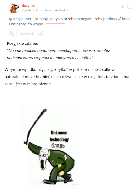 @BasTajpan Bycie ruskim trolem, to musi być strasznie c-----a praca. Siedzisz i piszesz brednie pochwalne na temat tego zdegenerowanego, ruskiego k--------a, w które sam nie wierzysz, ludzie w internecie się z ciebie śmieją, ale oficer prowadzący kazał, a ruble same się nie zarobią xD