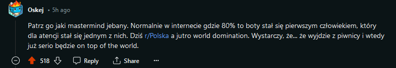 Znowu naprodukowali 180 komentarzy i 500 plusów, trzęsę tą Redditową łajbą jak chcę XD