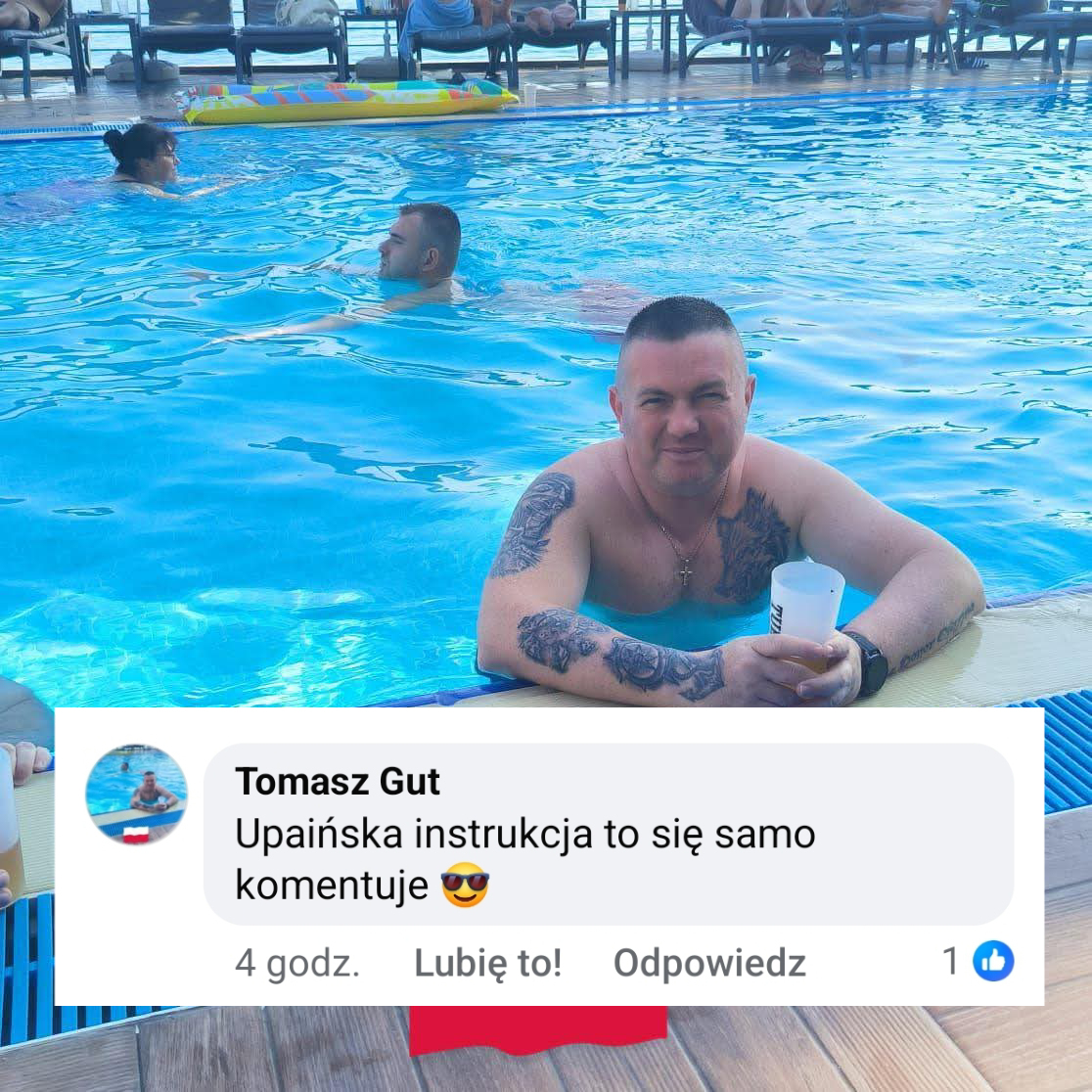 @Dominek: Fryzura oskarka, kartoflana morda chłopa, co ową mordą pole ora i tatuaże w tak złym guście, że wyglądają jak martwica tkanek. A i z basenu, że niby się powodzi i dobry przekaz leci. XD