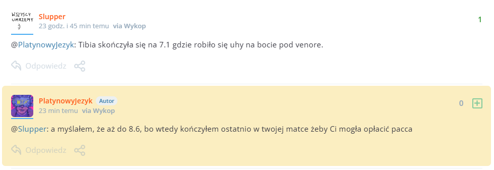 @Sweet_Pear_in_Teriyaki: Ja od tygodnia przed spaniem mam lanie po pupie. Takie lanie, że muszę leżeć na brzuszku. Wtedy się śmieję, jacy to moi rodzice są gupi. Bo przecież po takim laniu nie mogę zasnąć. ale gupi.