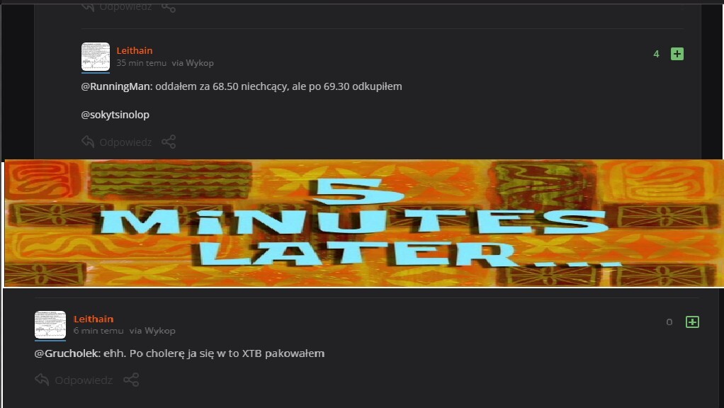 @Leithain dzisiaj otrzymałeś 2 darmowe ważne lekcje. 1. Stop oraz limit to nie to samo. 2. Nie kupuje się na pierwszej podbitce po wodospadzie na otwarciu. Od razu oszczędzę Ci trzeciej - nie sprzedawaj tylko teraz w panice :D