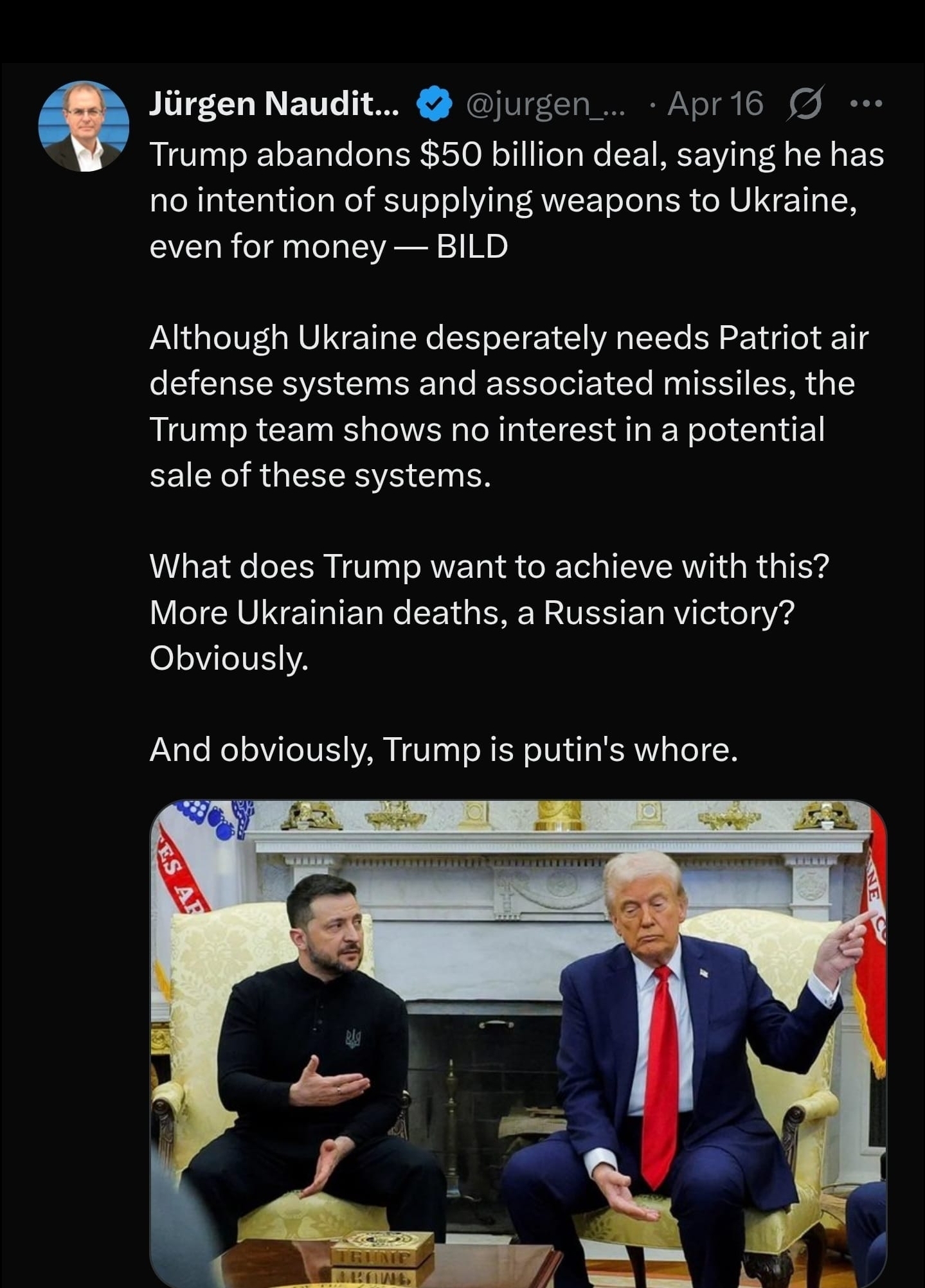Jesteśmy świadkami bardzo smutnego momentu w historii Ameryki. Prezydent Stanów Zjednoczonych staje po stronie dyktatora Rosji, Władimira Putina, aby podważyć niezależność Ukrainy i jej demokrację. Oto moje przemyślenia: