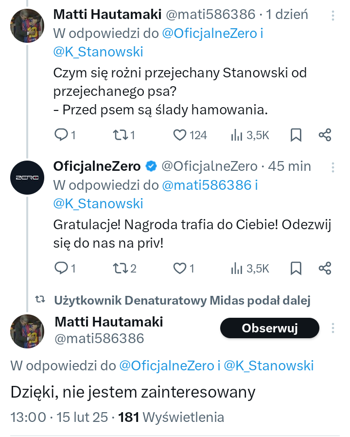Jego "dowcip" jest na poziomie upośledzonego nastolatka czyli na poziomie dna intelektualnego, więc co by Kanał Zero nie odpowiedział, byłoby to zgaszenie przygłupa. I właśnie tak było.