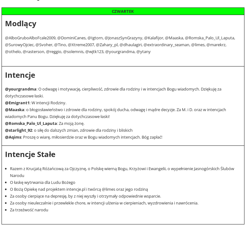 Jeśli masz kłopot, potrzebujesz wsparcia, chcesz komuś pomóc, zostaw intencje w komentarzu. Obejmie Was modlitwą kilkadziesiąt osób, których nicki znajdziecie w grafiku.