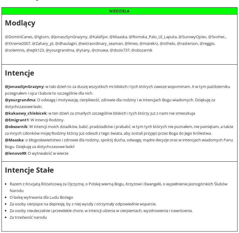 Jeśli masz kłopot, potrzebujesz wsparcia, chcesz komuś pomóc, zostaw intencje w komentarzu. Obejmie Was modlitwą kilkadziesiąt osób, których nicki znajdziecie w grafiku.