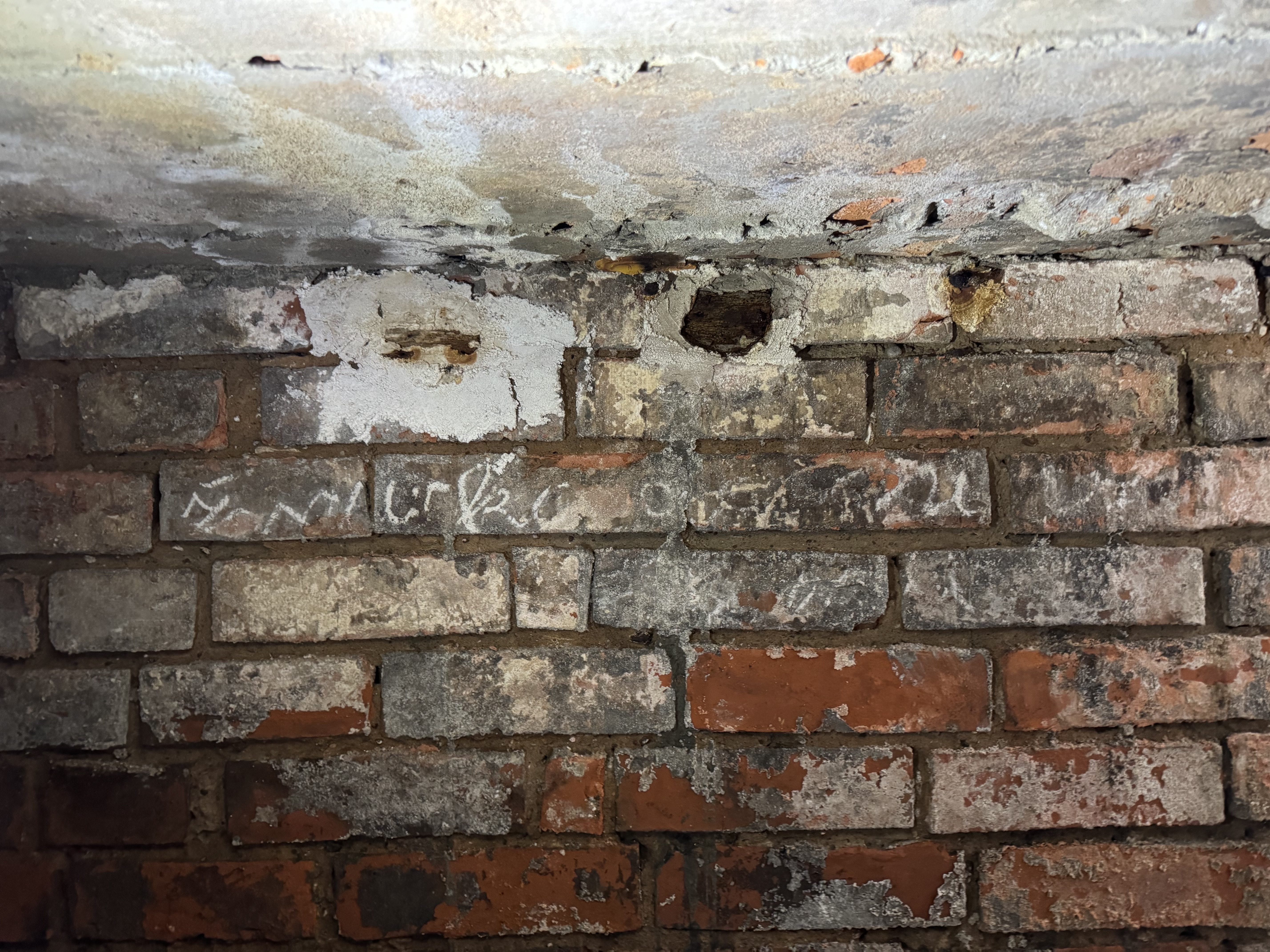 W ostatnią sobotę miałem przyjemność odkopywać starą piwnicę. Znalazłem na ścianie napis, nie mam bladego pojęcia co może znaczyć. Czy ktoś z Was jest w stanie to rozczytać/przetłumaczyć?
