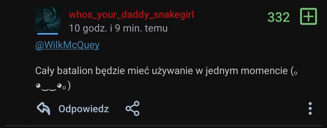 @vieveble Czy napisał prawdę jest to prawdopodobne. Jednak zwróć uwagę na tę emotke. Ten człowiek był ucieszony na samą myśl, że dziewczyna była by gwałcona przez cały batalion i też przekazał ten uśmiech w tym komentarzu.