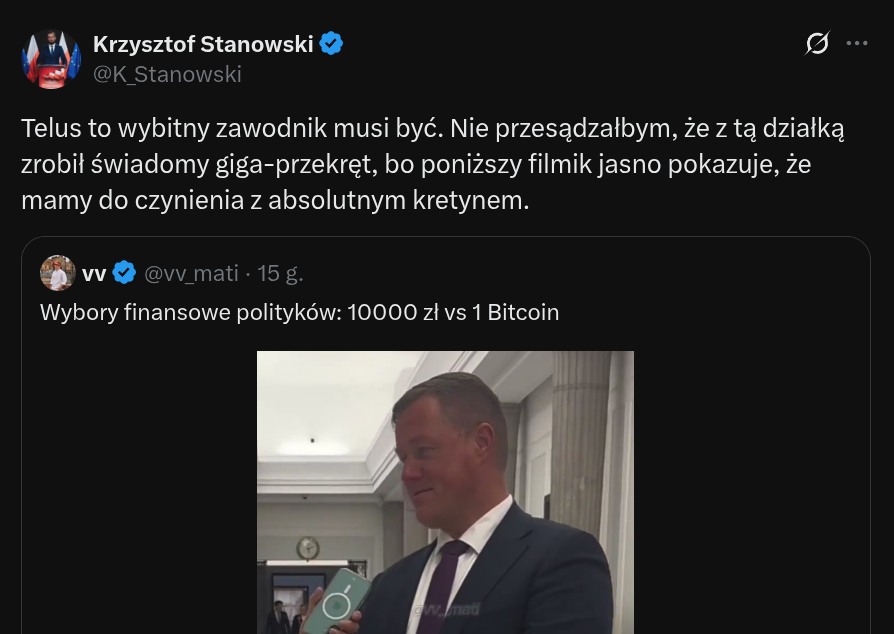 Trzeba przyznać, że Stanowski bardzo perfidnie zarządza kręgami w swojej narracji. Jak coś dotyczy kogoś z koalicji, to jedzie bardzo szeroką narracją tak, żeby jeszcze mocniej uderzyć w partię, jako całość. Tutaj z kolei stara się maksymalnie zawęzić krąg i wyizolować osobę a najlepiej, to w ogóle zrobić z niej jednostkowy przykład kretyna, który może gdzieś tam do jakiegoś ugrupowania należy, ale kto by pamiętał do jakiego.