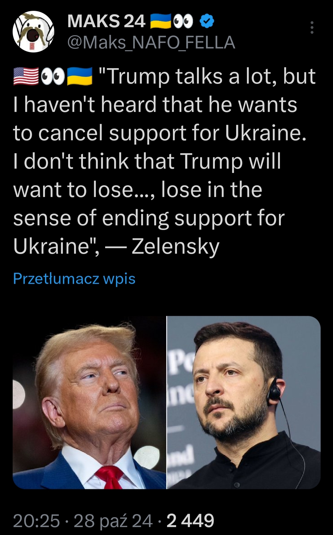 Przypomnę tylko: Trumpowi chodzi o de facto oddanie Ukrainy kacapom i wycofanie się z Europy + czytam też o jakimś wysłaniu naszych żołnierzy na Ukrainę. Dodatkowo NATO będzie zmarginalizowane