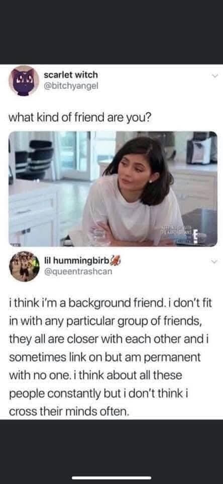 @chlodna_kalkulacja: no ja mam np tak że nawet jak mi się wydaje że gadam z ludźmi normalnie to potem okazuje się że oni i tak wola gadać ze sobą nawzajem a nie ze mną wiec trudno mi nawet stwierdzić co robię źle xd