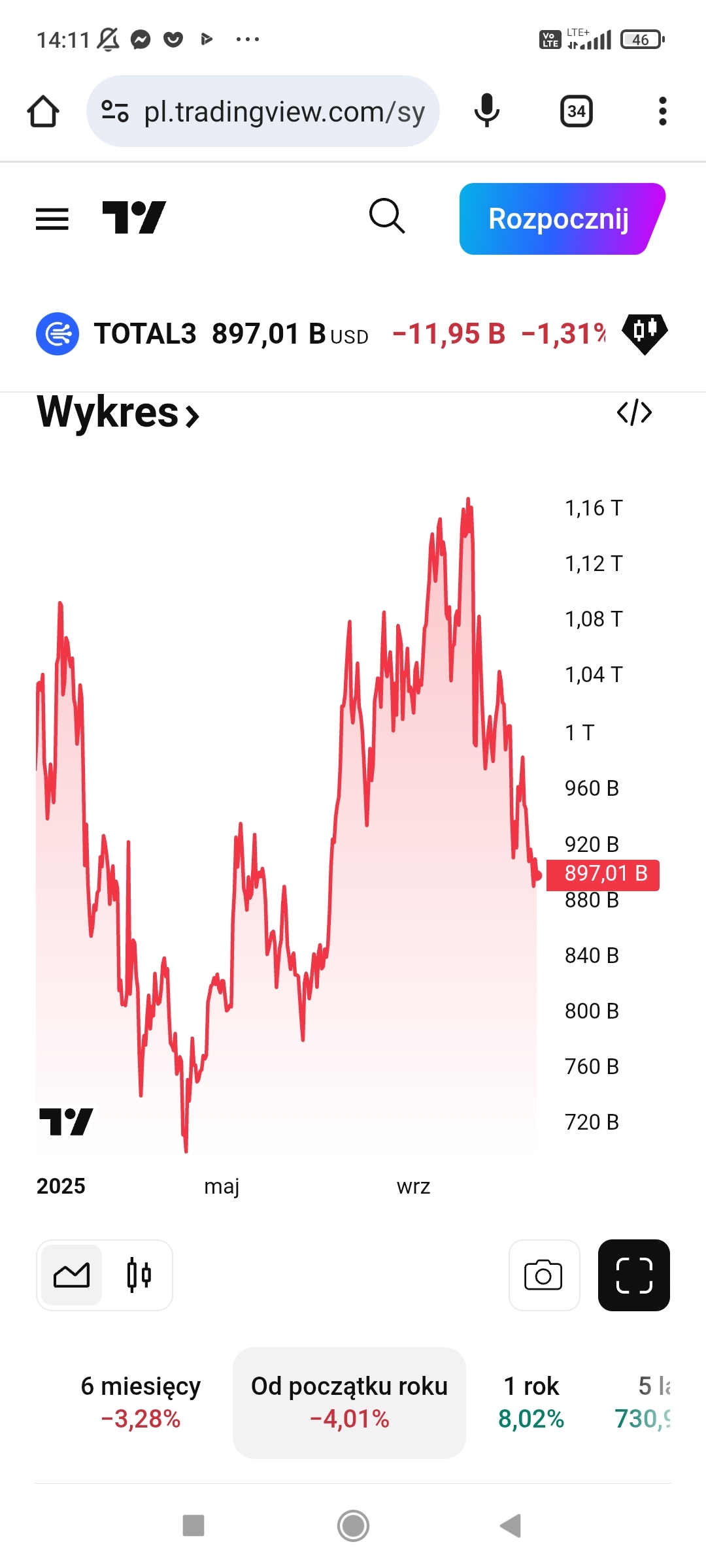 #kryptowaluty swoją drogą wykres total3 na fajnym wsparciu na odbicie, na fear greed index 10. Nie żeby to była porada inwestycyjna ale chyba to dobry moment żeby coś altów zakupić z logicznego punktu widzenia.