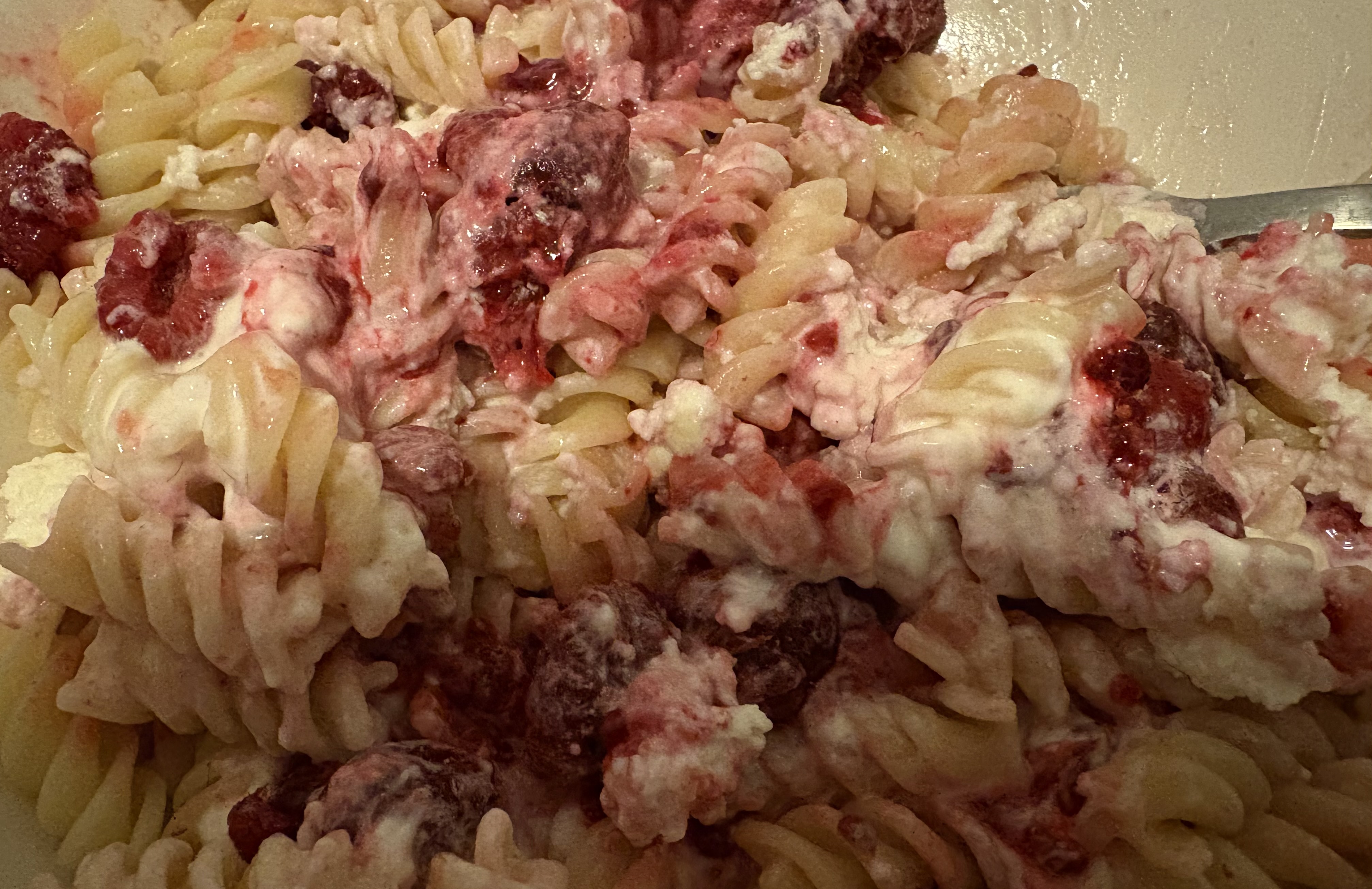 Makarun z twarogiem i malinami #jedzzwykopem