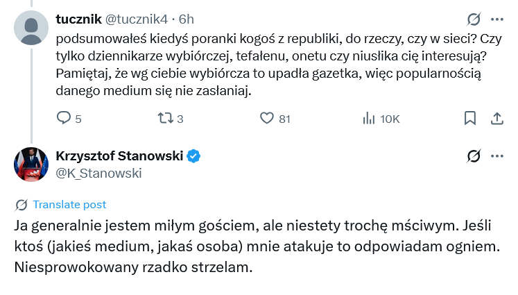 @TonaldDusk0: No tak, jakby ktoś przed wyborami obsmarowywał mnie u redaktora Rymanowskiego powołując się na Murańskiego, to też bym mu ręki nie podał. Trzeba się szanować.