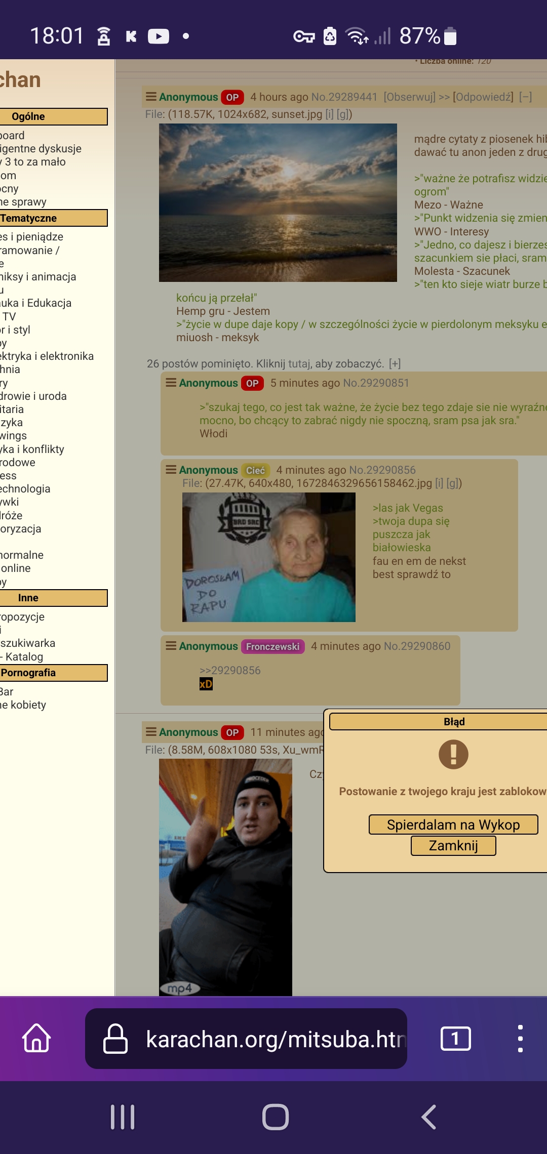 #karachan Ej chce zapostowac na karachan i mi wyskakuje komunikat żebym spadał na wykop jak to powinnac mirki ?