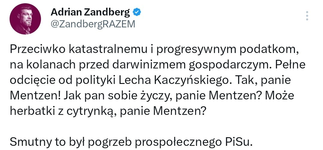 @pogromca_kucy: tu zandberg ma rację, a kanał zero uważa że nawrocki dobrze wypadł - wyparł się swojej partii i co teraz kaczor zrobi? podejrzewam że kaczor ma jakieś haki na nawrockiego i nawrocki wróci i pocałuje berło swojego pana