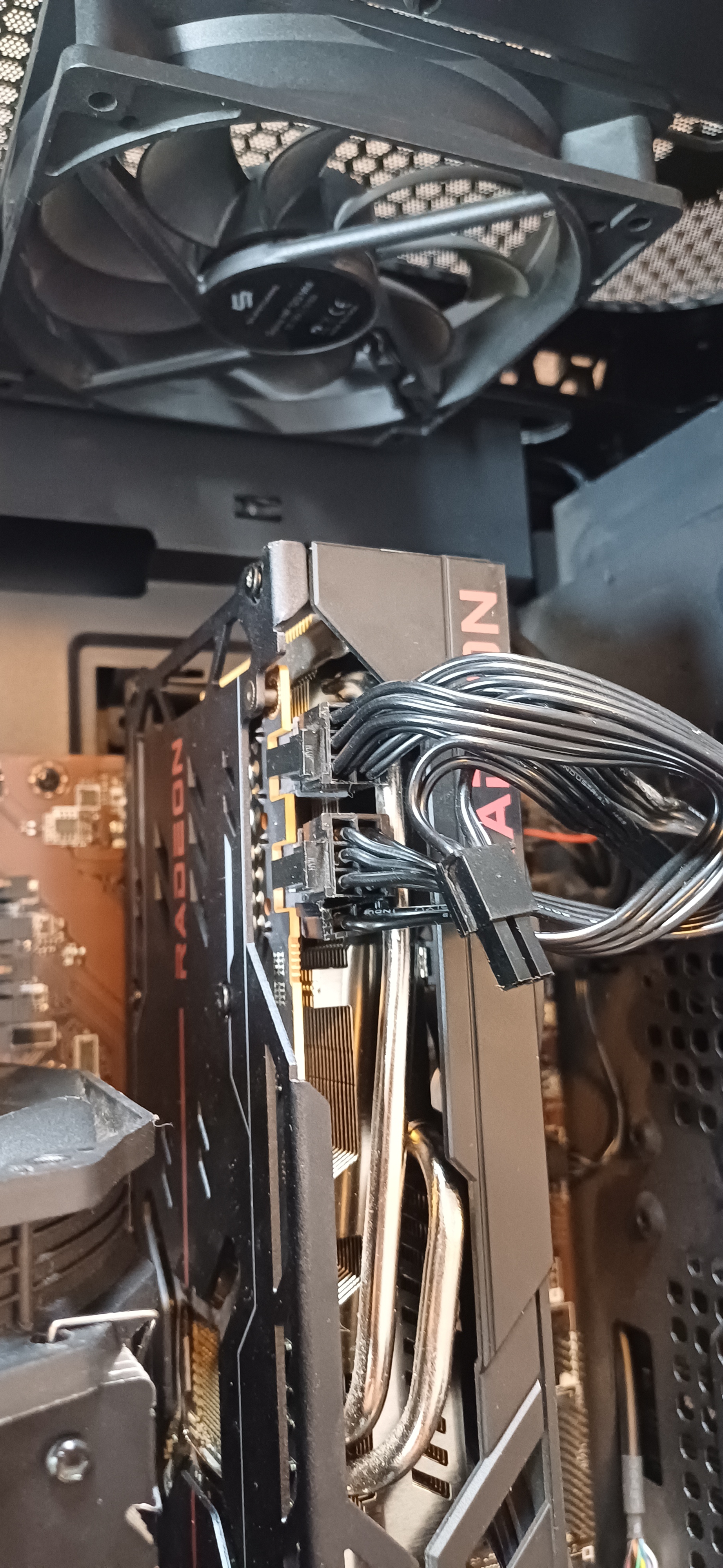 Mirki pomocy. Podłączam kartę graficzną i mam takie dwa złącza 8 pinowe, a potrzebuje jeden 6 pinowy którego nie widzę w zasilaczu. Da się ten 8 pinowy jakoś podłączyć do portu 6pin? #komputery #technologia #pcmasterrace