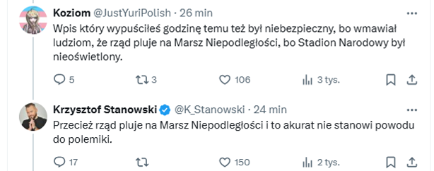 Potem niby sprostowanie (ale tylko jeśli każda żarówka na narodowym jest włączona!!) a potem jeszcze dyskusja z kolegą @Koziom sugerująca, że prawdziwi patrioci to tylko w pis "i to akurat nie stanowi powodu do polemiki" - stwierdził autorytarnie krzyś.
