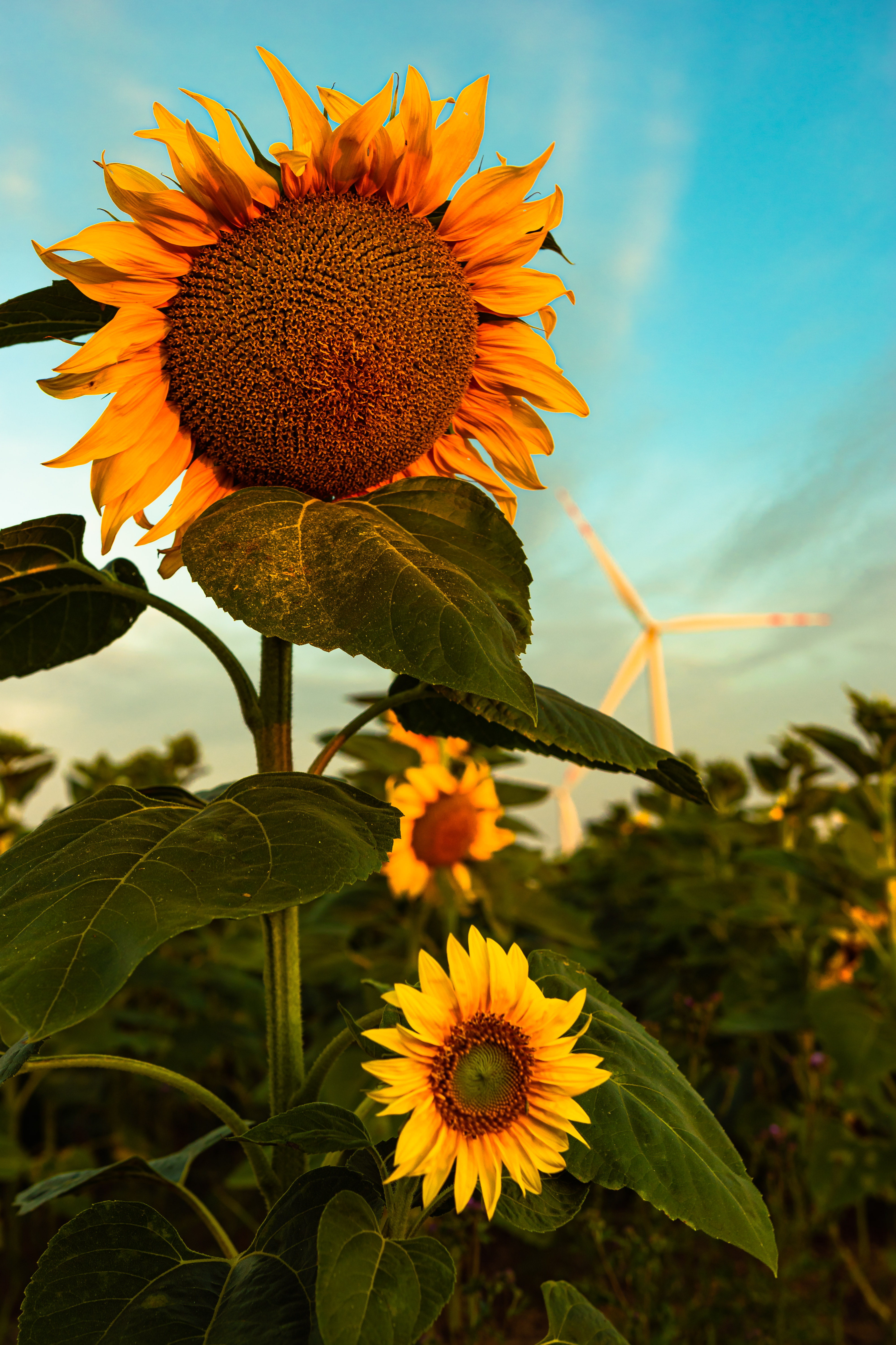 PobierzKiedyś wyszedłem z piwnicy i poszedłem na pole słoneczników zrobić zdjęcie słonecznika na tle wiatraka.