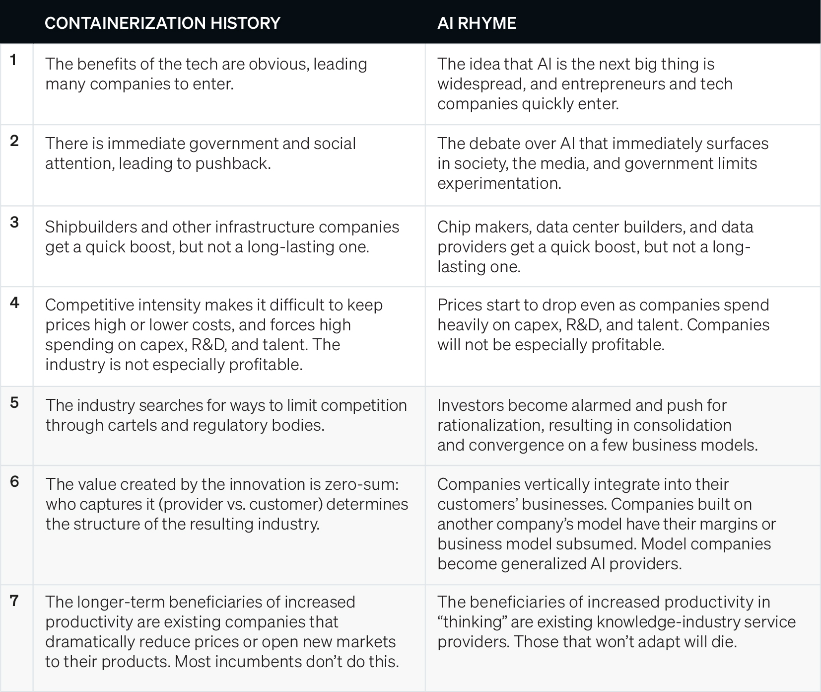 Przeczytałem właśnie dość ciekawy artykuł o tym, dlaczego AI może nie być złotą żyłą dla inwestorów, mimo że zmieni świat. Autor porównuje w nim obecny boom do konteneryzacji transportu morskiego - rewolucja która zmieniła globalny handel, ale wzbogaciła tylko garstkę osób.