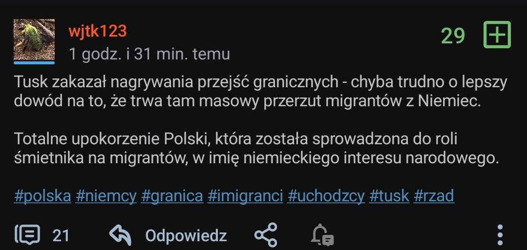 Mieszkam na pograniczu polsko niemieckim, granice przekraczam, średnio 3, 4 razy w tygodniu, i naprawdę nie widziałem ŻADNEGO przerzucanego migranta przez granicę xd, przed nagłośnieniem afery przez troglodytow od bakiewicza, na granicy był spokój i co najwyżej słychać tam było świerszcze jak się jechało wieczorem. Dzięki paru debilom przywrócili kontrolę, która utrudni płynny ruch na pograniczu