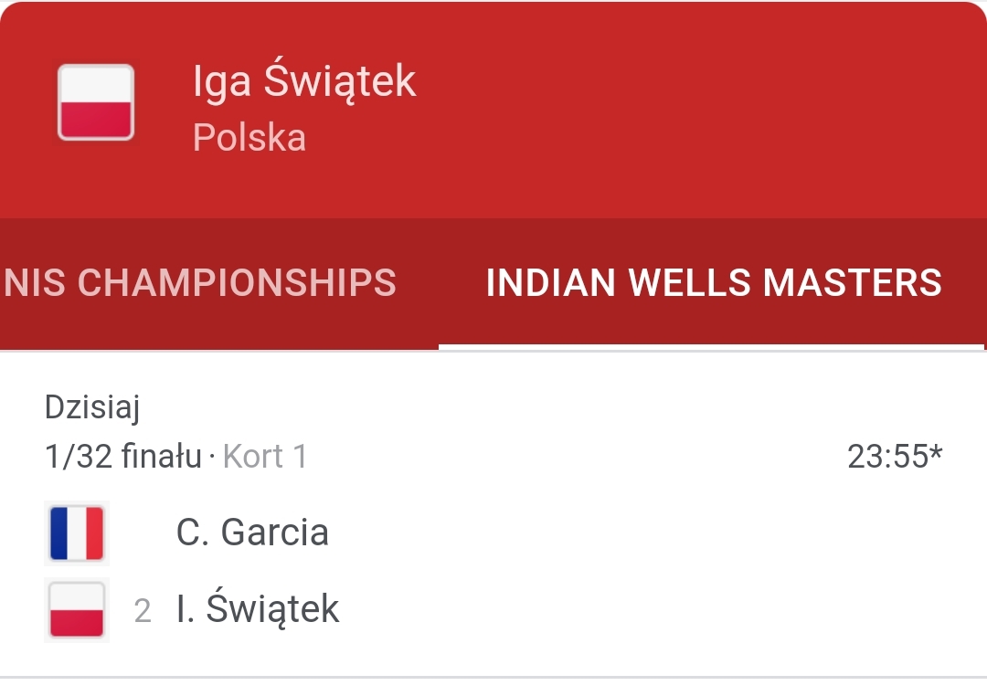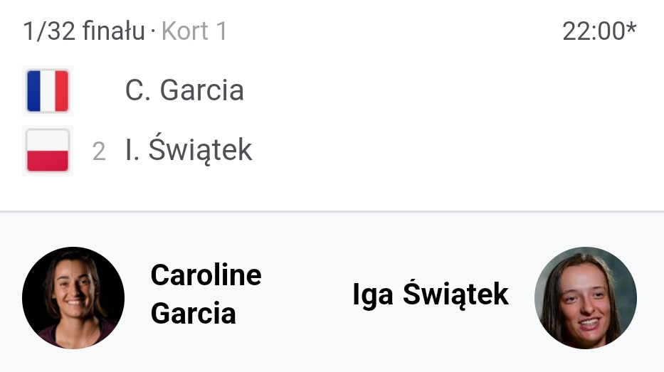 @codeq: może być nawet później, bo iga jest po meczu Parks - Kaliskaya
