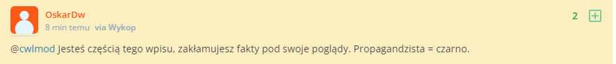 Z każdym dniem tego najazdu na was pokazujecie jak ucieka z was RiGCz. Kłamstwa i Manipulacje Memcena to żarty. Debilne komentarze Korwina i Brauna to śmieszne teksty starszych dziadków nie brane na poważnie. Obrażanie opozycji to normalna krytyka. PisPełoJednozło to normalne hasło, bo przecież obie partie są takie same skoro nie mają programu konfy -