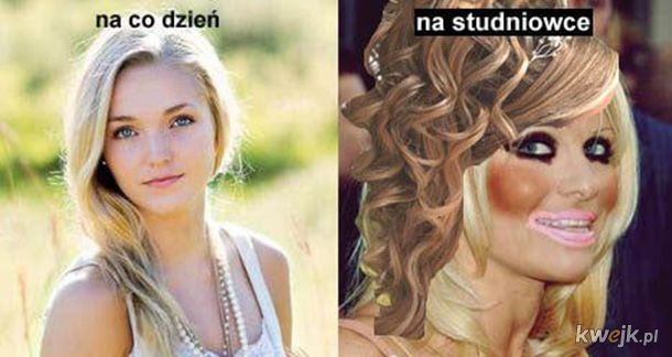 @SzybkiBLN: ogolnie zawsze tak jest problem po tych make up artystkach. Moja była wyglądala na studniówce tak brzydko po tych zabawach ze nie chciałem z nią przebywać paręnaście lat minęło dalej wypuszcza dziewczyny po transformacji w potwory xD