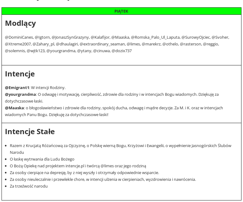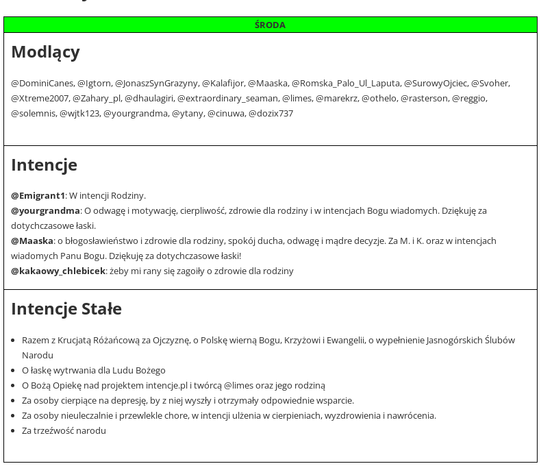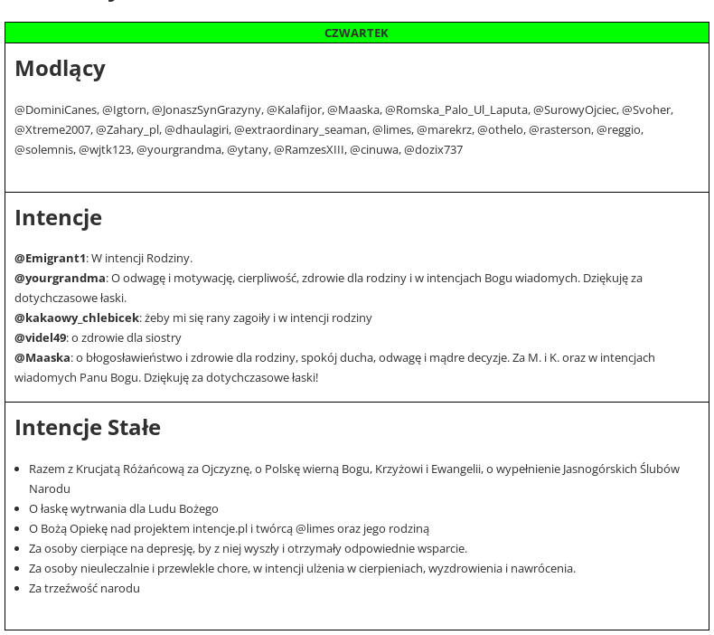Jeśli masz kłopot, potrzebujesz wsparcia, chcesz komuś pomóc, zostaw intencje w komentarzu. Obejmie Was modlitwą kilkadziesiąt osób, których nicki znajdziecie w grafiku.