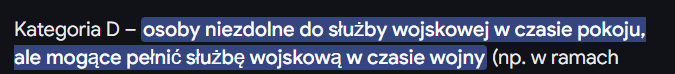 @twoj_starrry: No dobrze, twój screen tyczy się sytuacji w przypadku wojny, a narazie jest mowa o poborze w czasie pokoju i ćwiczeniach, więc powodzenia na kręceniu wora, ja nie muszę nigdzie iść ( ͡°͜ʖ͡°) Szczerze, w czasie wojny to wydaje mi się, że nawet kalekom z kat. E nie pozwolą wyjechać, także nic mnie nie zdziwi.